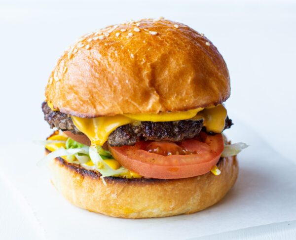 All beef patty, American cheese, lettuce, tomato, onions, mayo, mustard, pickles.