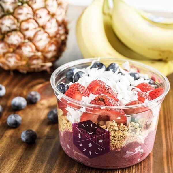 Toppings: Blueberries, Strawberries, Granola, Coconut Flakes