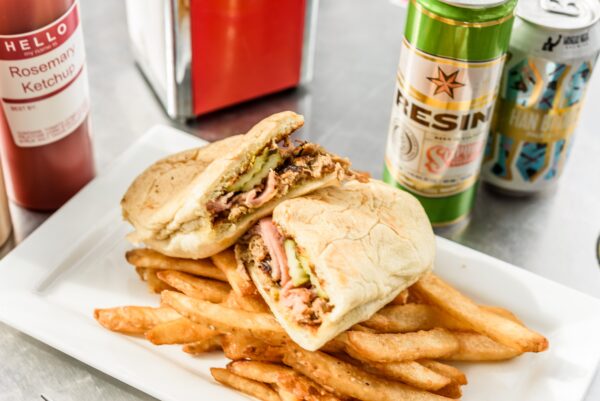 The Cuban Posted on September 24, 2021 $15.40 Side * Select an option... Kettle Chips Beer Battered Fries Tomato Basil Soup (+$3.30) Chili w/ Cheddar (+$5.50) Side Salad (+$5.50) Mac & Cheese (+$5.50) Add-Ons Extra Cheese (+$1.10) Bacon (+$3.30) Jalapenos (+$0.55) Dill Pickles (+$0.55) Vegan Cheese (+$2.20) Gluten Free Bread (+$2.20) The Cuban quantity Add to cart Brand: MELT Description Description Pork, ham, swiss cheese, dill pickles, & yellow mustard on a Cuban roll Related products Picnic Duo $12.10 Restaurant: MELTAdd to cart 3 Amigos $16.50 Restaurant: MELTSelect options Milo’s Tea $7.00 Brands: MELT, Blueroot, City Bowls, Lunch Box ExpressSelect options Rock-A-Doodle $16.50 Restaurant: MELTSelect options